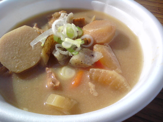 あったかい芋煮を一杯貰って食べた。