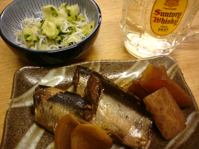 サンマと水菜のサラダと、チューハイ。