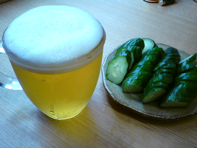 汗をかいたんで塩っぺ―胡瓜もうめー!