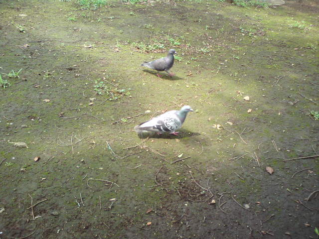 食べ始めるとすぐ、鳩がよってくる。